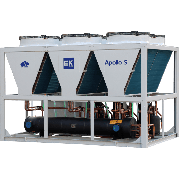 Серия Apollo S включает в себя модульные воздухоохлаждаемые чиллеры с высокой производительностью, оборудованные спиральными компрессорами.