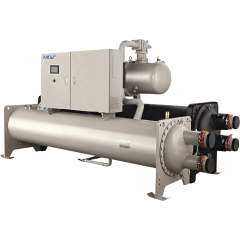 Водоохлаждаемые чиллеры на базе винтовых компрессоров Bitzer (Германия). В линейке представлены модели производительностью от 336,9 до 1765 кВт. Применяются в качестве систем центрального кондиционирования, промышленных систем холодоснабжения. Чиллеры могут работать с BMS Modbus и бесплатной программой Midea MSC.