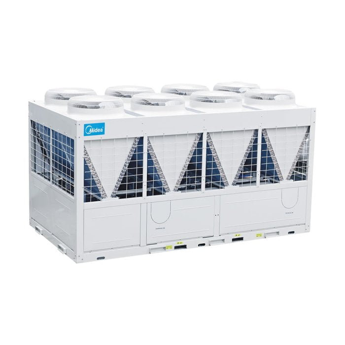 Модульный чиллер с воздушным охлаждением конденсатора – это устройство для подготовки холодной (теплой) воды в системах кондиционирования воздуха для обеспечения работы фанкойлов, и центральных кондиционеров или в производственных целях. Системы холодоснабжения на базе модульных чиллеров позволяют обеспечивать поэтапный ввод объекта в эксплуатацию. В модульных чиллерах Midea используются спиральные компрессоры, которые отличаются высокой надежностью и эффективностью. Благодаря V-образному теплообменнику конденсатора и возможности осуществлять плавное регулирование производительности достигается энергоэффективность работы агрегата. Система автоматики в зависимости от нагрузки обеспечивает наиболее экономичный режим работы.<br>
