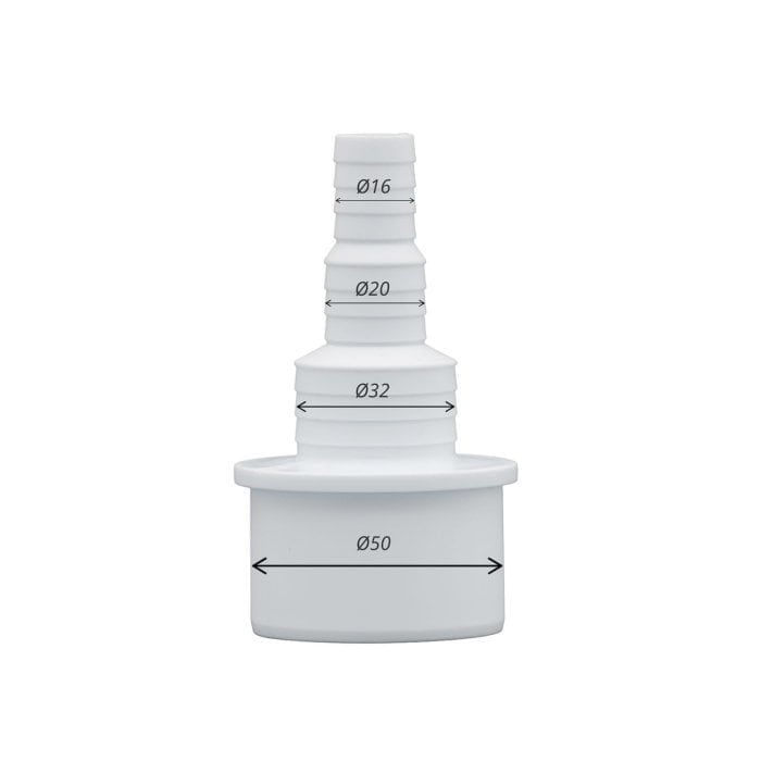 Дренажный полипропиленовый переходник PROFcool для подсоединения труб Ø16-Ø20-Ø32-Ø50 размеров. Идеально подходит для дренажа кассетных и канальных кондиционеров. Отечественное производство.