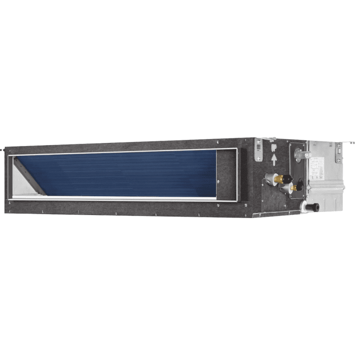 Внешнее статическое давление может достигать 250 Па, это позволяет свободно конфигурировать систему воздуховодов. Один блок может использоваться для охлаждения нескольких помещений.