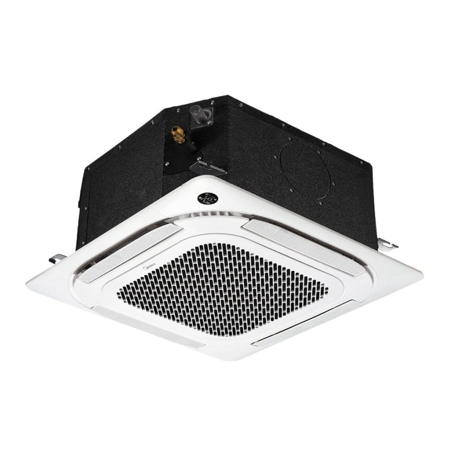 Кондиционер кассетного типа в компактном исполнении (600x600) с запатентованной технологией воздухораспределения Breezeless™ и независимым управлением жалюзи.