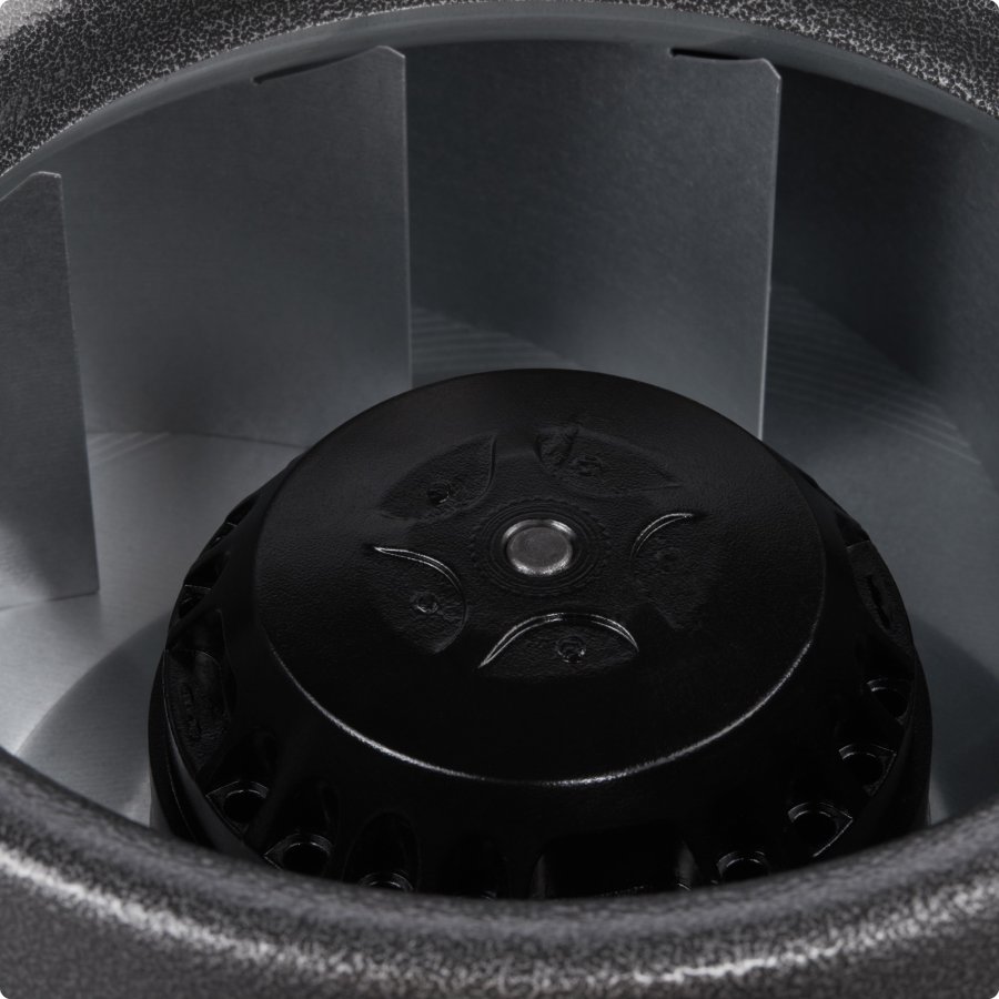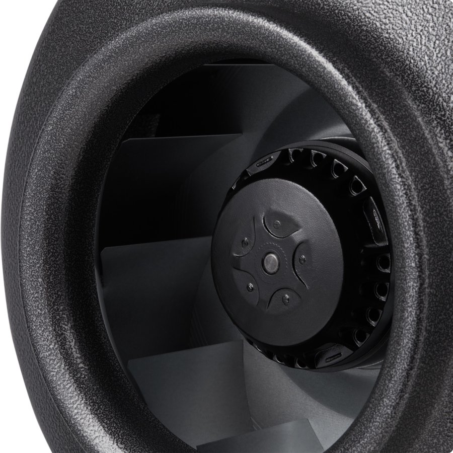 Электродвигатель с рабочим колесом статически и динамически сбалансированы в 2х плоскостях. Шариковые подшипники двигателя не требуют техобслуживания и имеют длительный срок службы. Двигатель вентилятора имеет встроенную термозащиту с автоматическим перезапуском. Регулирование скорости вентиляторов осуществляется путем изменения напряжения за счет использования однофазных плавных регуляторов скорости SRE.
