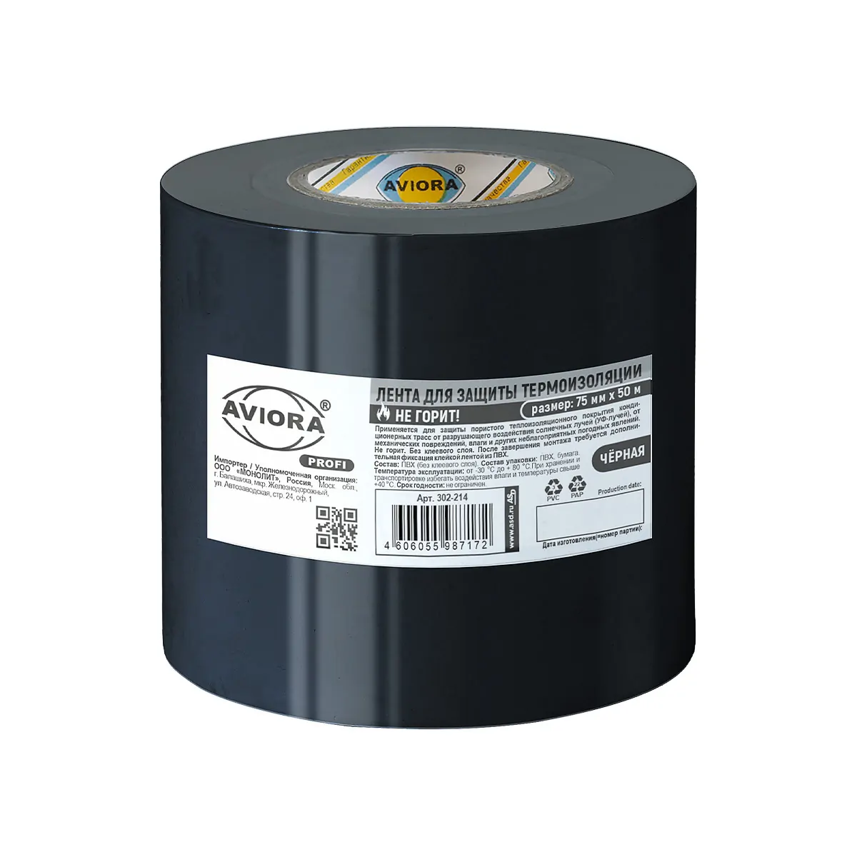 Описание Aviora Proffi 75 мм х 50 м черная
