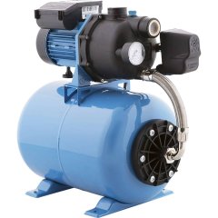 Насосная станция укомплектована поверхностным самовсасывающим электронасосом, горизонтальным гидроаккумулятором емкостью 24 литра, реле давления, манометром, соединительной арматурой и электрошнуром с вилкой.