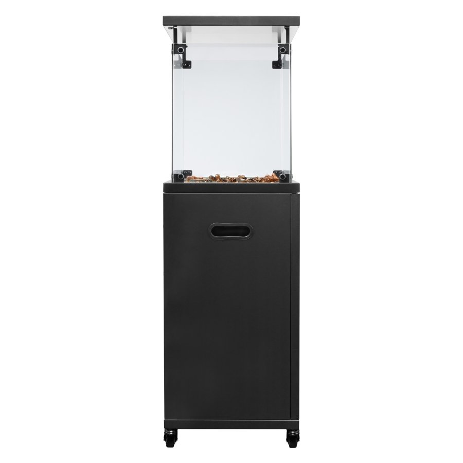 Корпус камина BOGH-14G изготовлен из высококачественной стали с порошковым покрытием, верхняя крыша частично защищает от попадания атмосферных осадков. За безопасность эксплуатации отвечает многоуровневая система защиты. Датчик наклона отключает пламя при наклоне газового обогревателя более чем на 45°, термоэлектрический датчик и электромагнитный клапан сразу же останавливают подачу газа в критических ситуациях, таких как затухание пламени или утечка газа. За счёт встроенной колёсной базы обогреватель свободно и безопасно можно перемещать по любой поверхности.