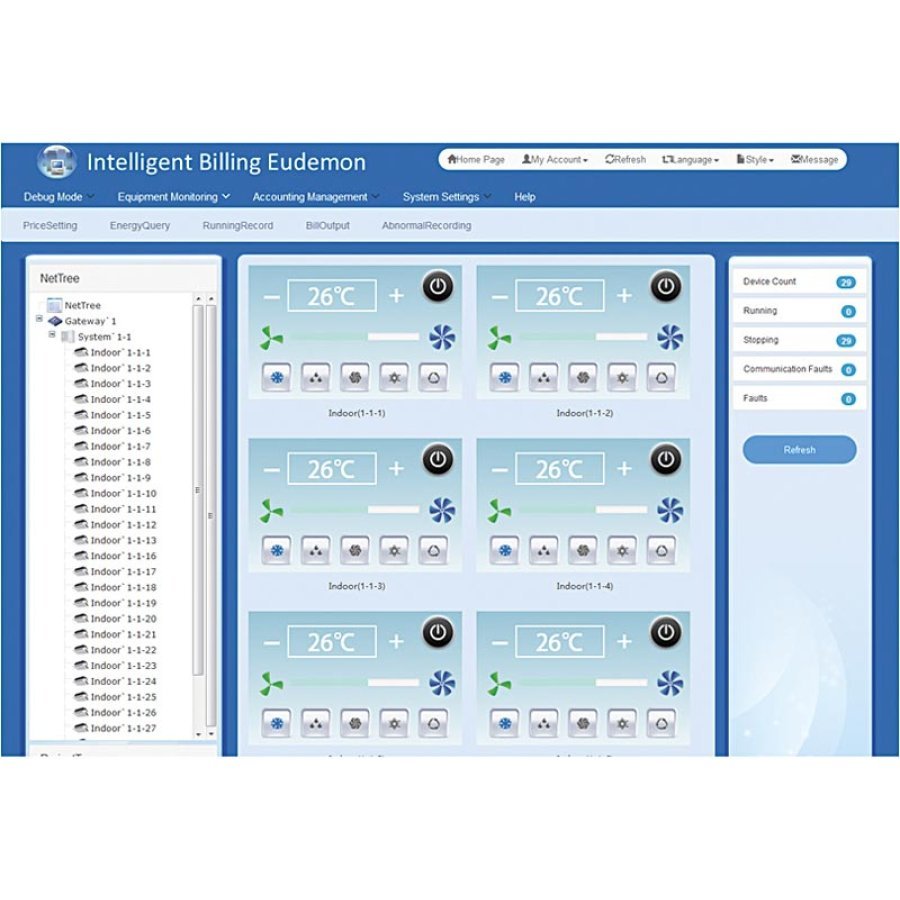 • Дистанционное управление включением и выключением внутренних блоков, настройка температуры, режима и других параметров в соответствии со счетом или требованиями пользователя