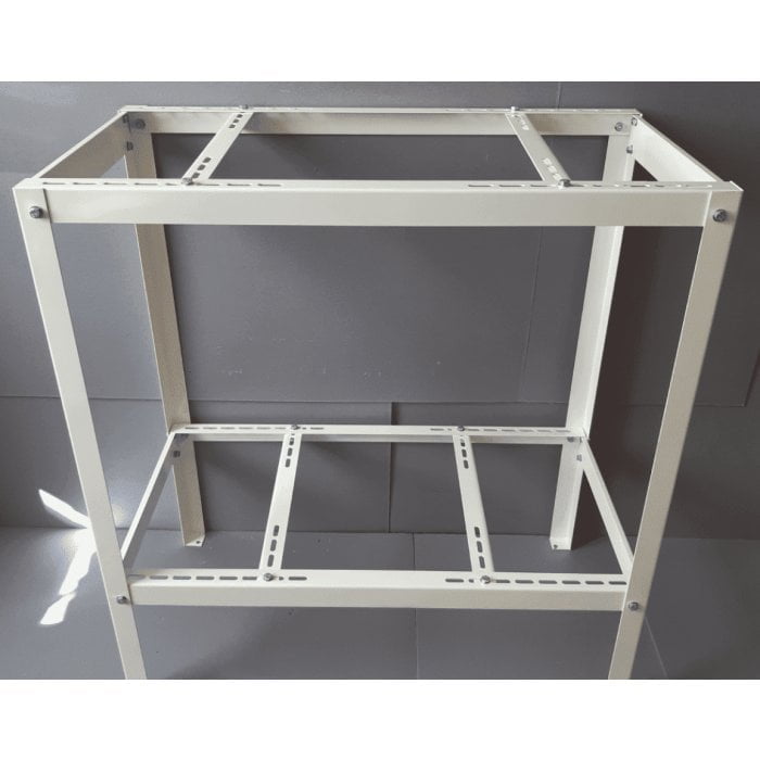 Разборная универсальная двухъярусная подставка используется для монтажа двух внешних блоков сплит-систем. Приспособление подходит к применению с широким спектром моделей кондиционеров, благодаря своей конструкции с регулируемыми планками, которые можно установить под необходимые размеры внешнего блока. Подставка обеспечивает надежное крепление, а также минимизирует возможные вибрации. Подставка покрыта порошковой краской белого цвета, благодаря которой не подвергается химическим и механическим воздействиям. Несмотря на неблагоприятные погодные условия, сохраняет привлекательный внешний вид и надежность конструкции.
