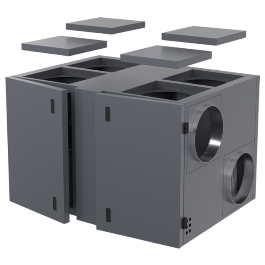 Установки универсального исполнения серии ZPVR-N UE EC представляют собой моноблочную компактную приточно-вытяжную установку с EC вентиляторами, роторным рекуператором, безопасным РТС нагревателем и фильтрами класса M5 на притоке и вытяжке. Установки имеют корпус из оцинкованной стали с изоляцией 50 мм, окрашены порошковой окраской в графитовый цвет, RAL 7024. Предназначены для очистки, подогрева и подачи в помещения чистого подготовленного воздуха.