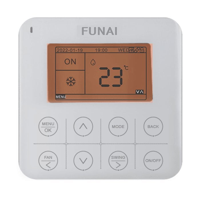 Проводной пульт управления с жидкокристаллическим дисплеем, предназначен для управления кондиционером для полупромышленных сплит-систем DRAGON и мульти сплит-систем ORIGAMI KODO.