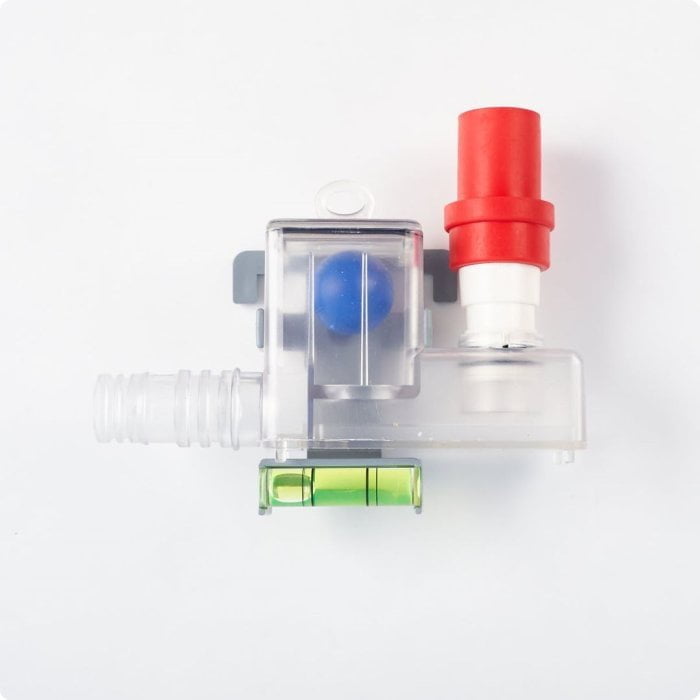 Cифон с гидромеханическим затвором VECAM micro имеет по одному входному и выходному отверстию для подключения трубок диаметром 5/8".