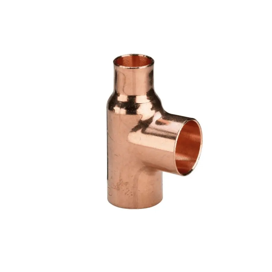 Тройник медный переходной 1/2''x1/2''x3/8''' для кондиционирования применяется для соединения и разветвления медного трубопровода для кондиционеров с применением труб разного диаметра. Пайка производится твердыми и мягкими припоями. Высокую надежность фитинга обеспечивает строгий контроль качества на производстве. Изготовлен по евростандарту EN 12735.