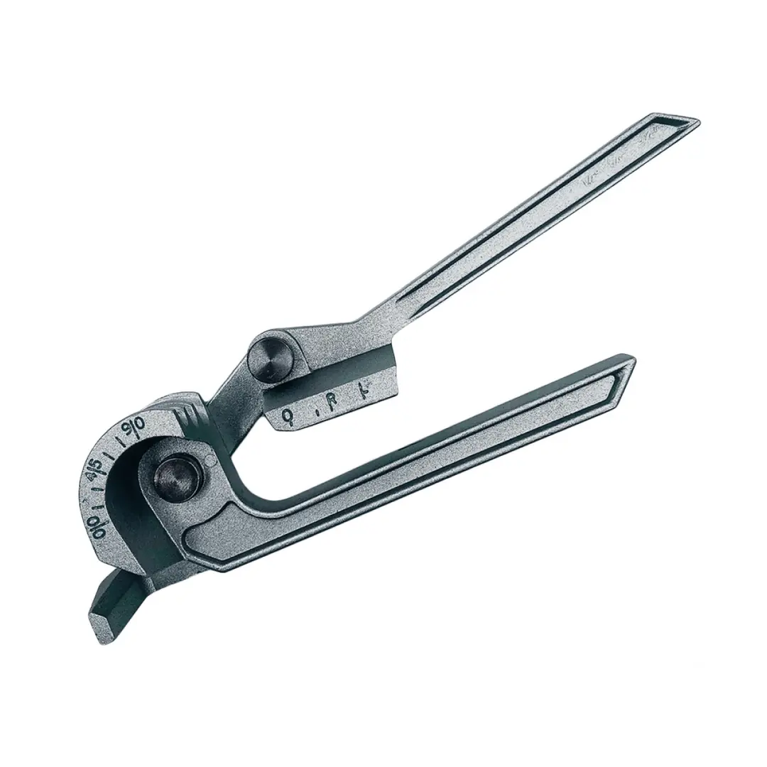 На три размера трубок : 1/4", 5/16" и 3/8" изгиб на угол до 90 гр.